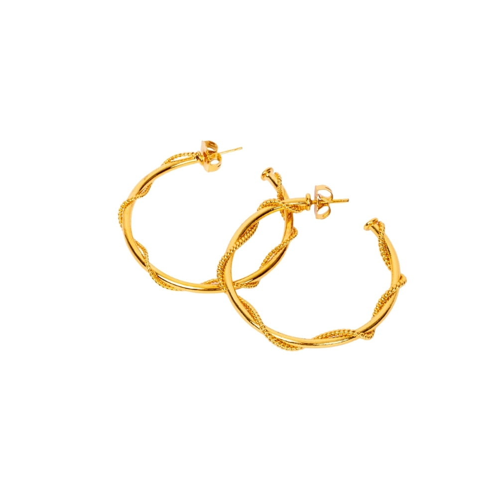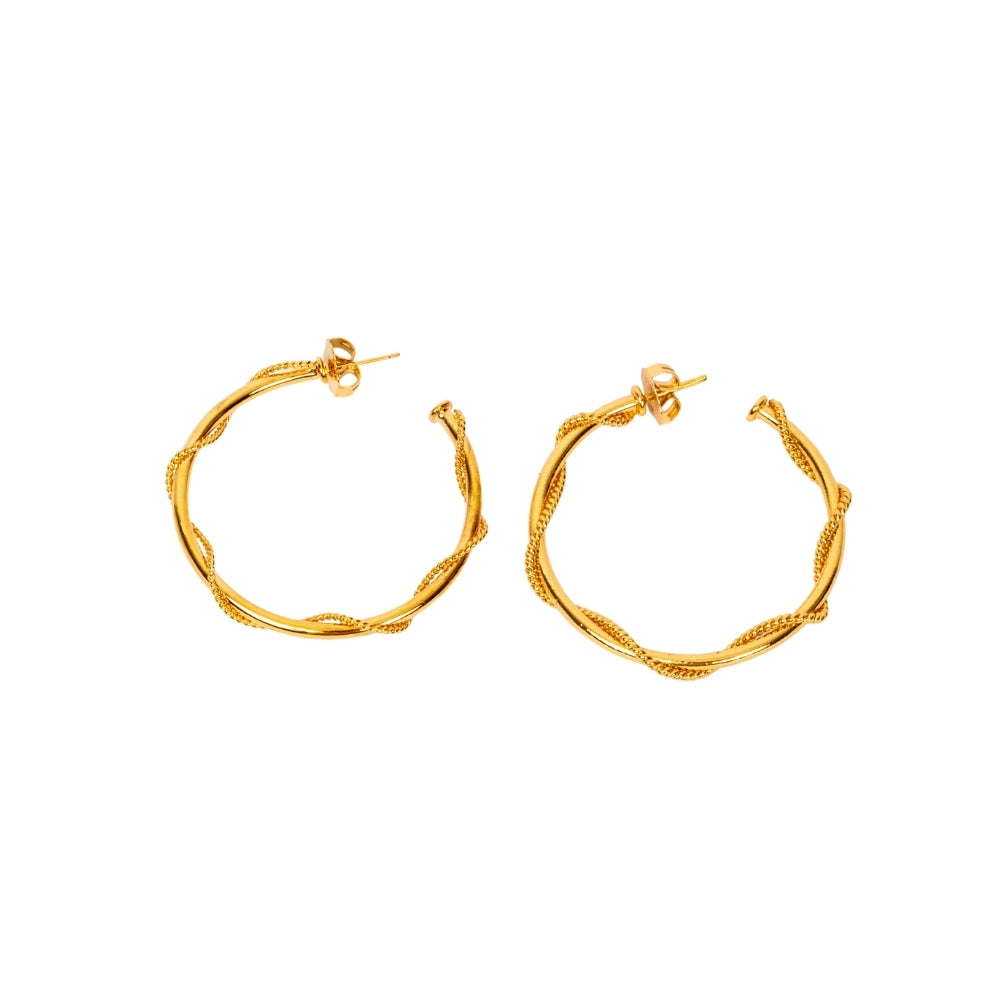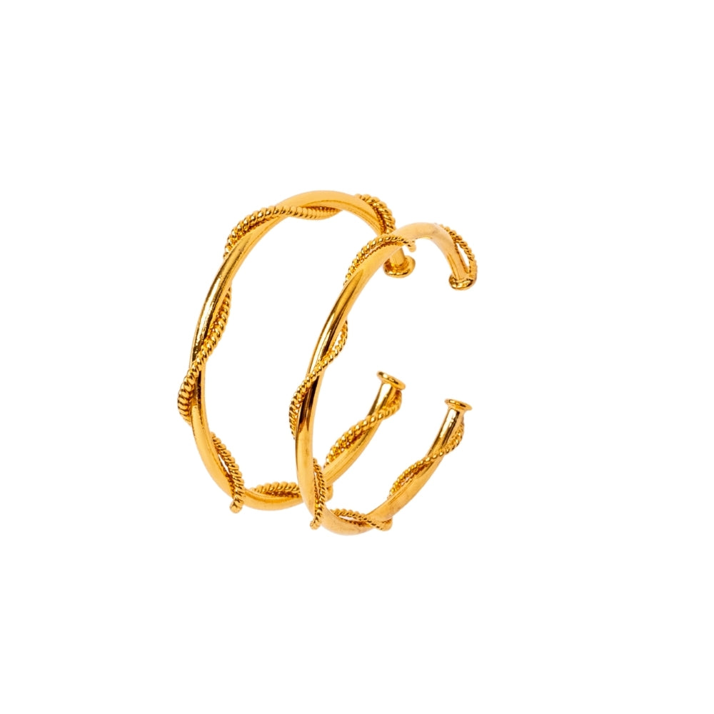 Elaboradas en bronce con baño en oro de 24k, presentan un diseño entrelazado que combina elegancia y carácter.
