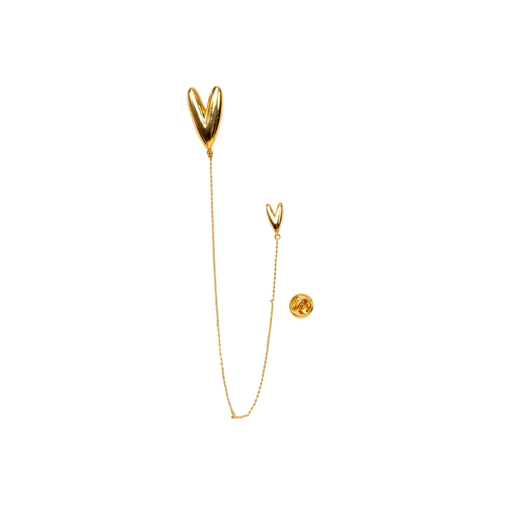 Dos corazones dorados, unidos por un lazo delicado que simboliza conexiones que trascienden el tiempo. Hecho en bronce con baño en oro de 24k, para llevar cerca lo que hace latir tu alma.