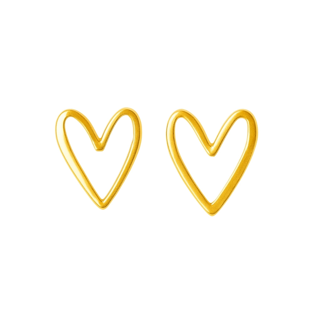 Par de topos en forma de corazón, elaborados en bronce con baño en oro de 24k. Hipoalergénicos, delicados y brillantes.